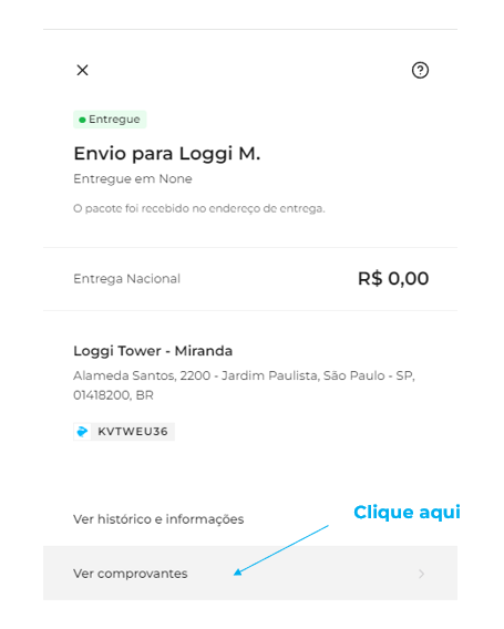 Verifique o comprovante de entrega disponível entrando no nosso site, onde você pode conferir mais informações para te ajudar a localizar o pacote (nome do recebedor, local, assinatura, foto de fachada). Você pode encontrá-lo seguindo os passos:
